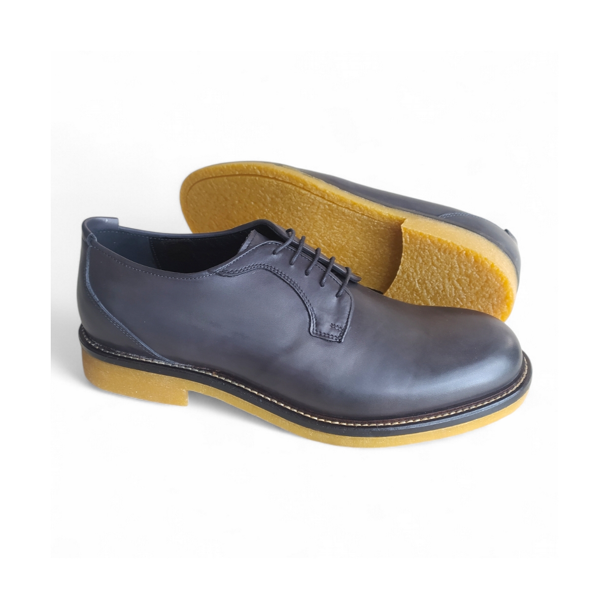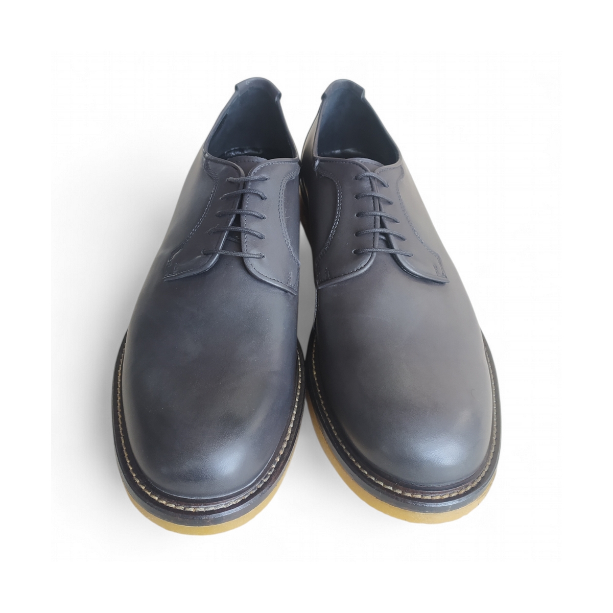 Scarpa uomo allacciata a derby con tomaia lisca e forma rotonda. 100% made in Marche materiali di qualitร forma comoda ottimo confort