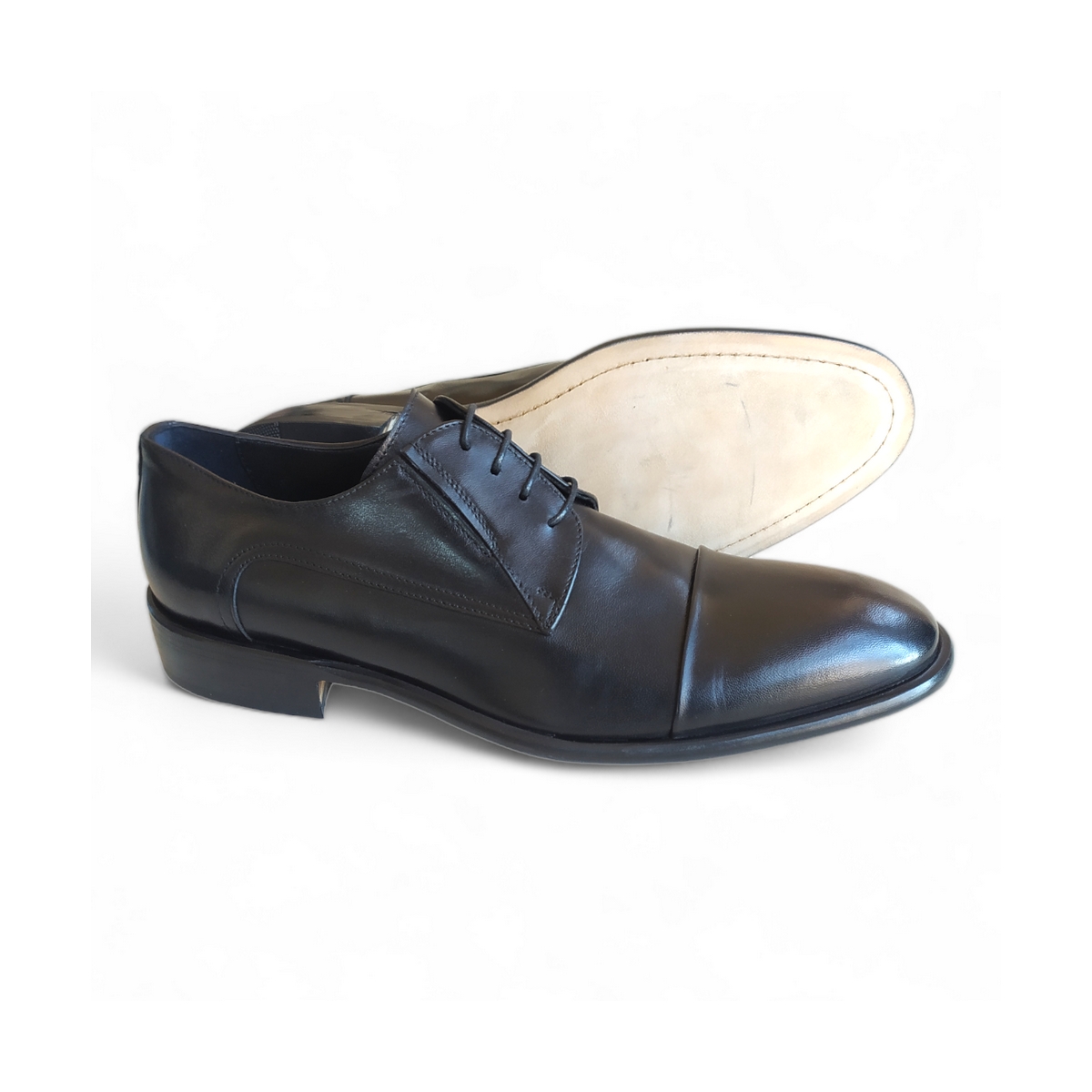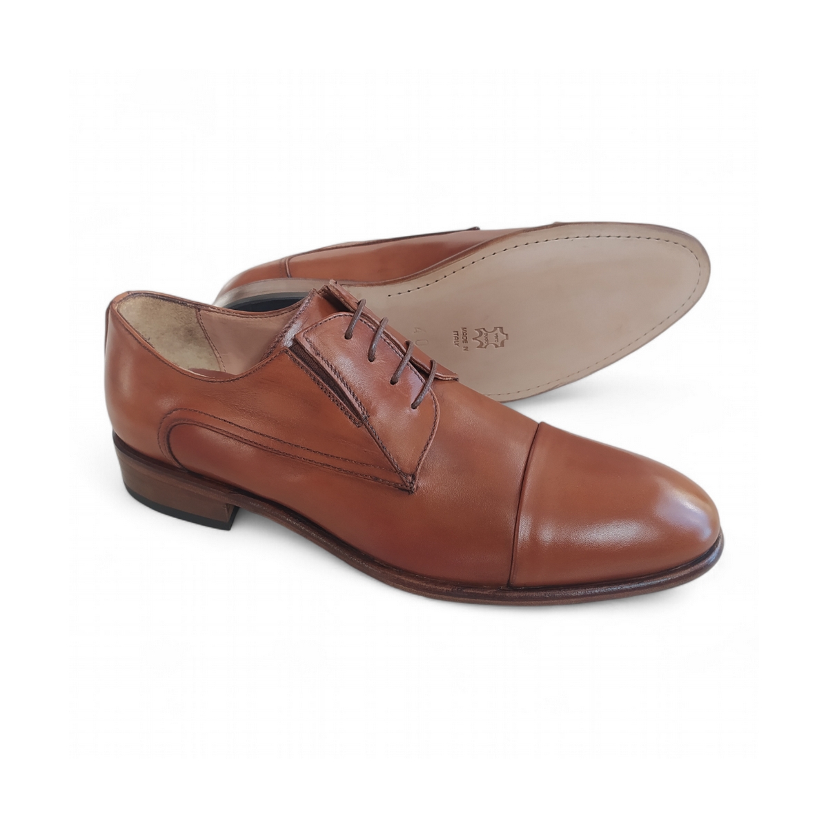 SCARPA UOMO ALLACCIATA CLASSICA CON PUNTALE,FONDO CUOIO CUCITO