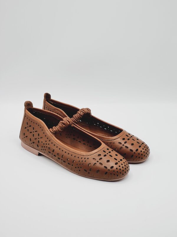 SHADDY BALLERINA PELLE TRAFORATA CUOIO/NERO