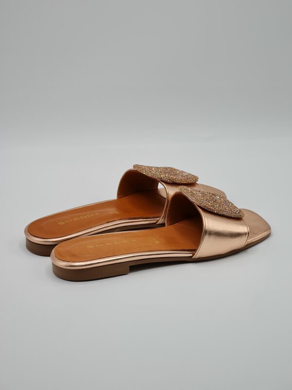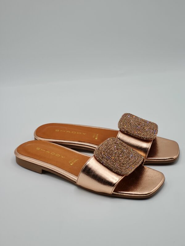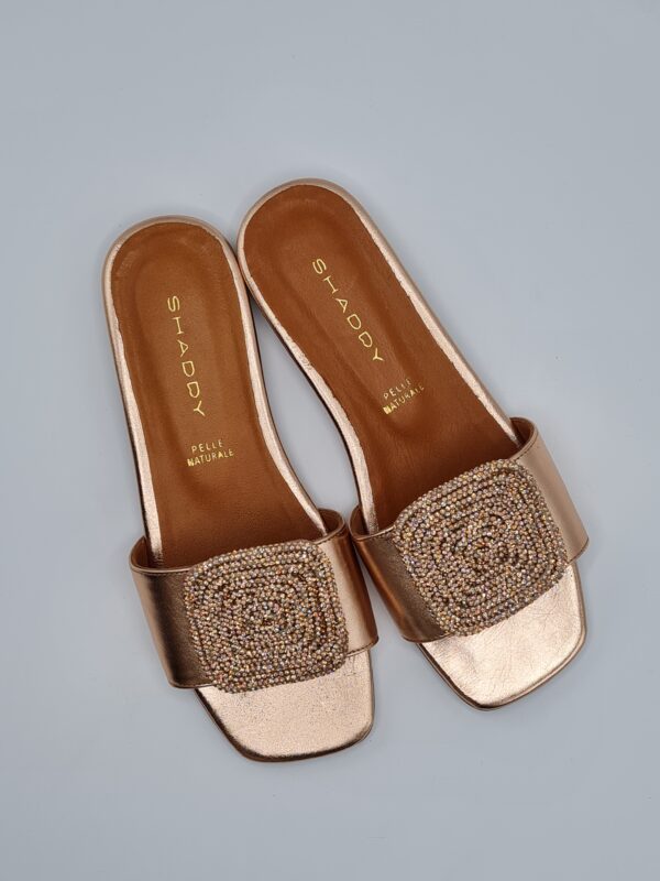 Una ciabattina in pelle ramato rose con un accessorio in strass รจ una scelta elegante e femminile. L’accessorio in strass aggiunge un tocco di brillantezza e glamour alla ciabattina. Il sottopiede in pelle assicura comfort e morbidezza per i tuoi piedi. Il tacco basso di 1 cm fornisce un po’ di sollevamento senza compromettere la comoditร , mentre il fondo in gomma offre aderenza e stabilitร  durante la camminata. In definitiva, questa ciabattina รจ una scelta chic e confortevole per completare il tuo look con stile.