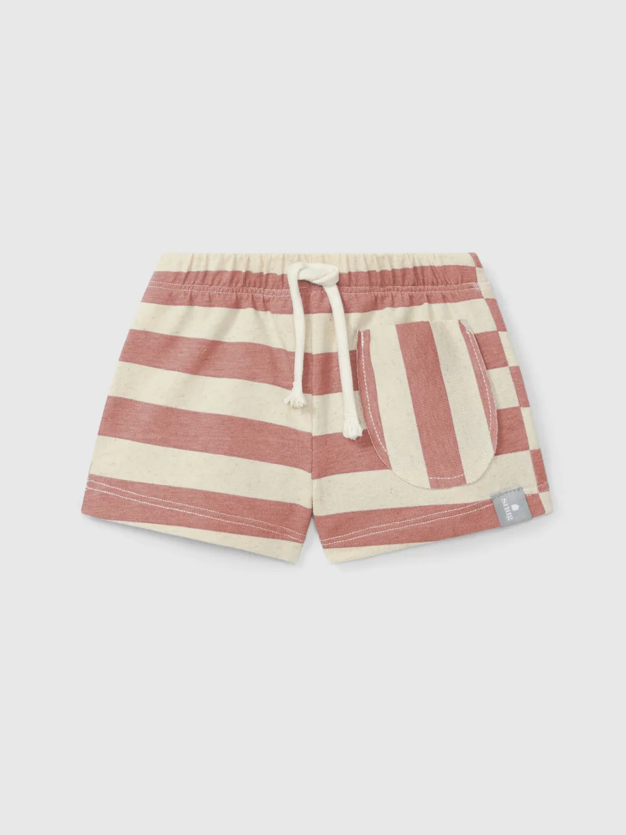 Shorts comodi in jersey di cotone e lino rigato, perfetti per la stagione calda. Caratterizzati da una pratica tasca funzionale sul davanti e una coulisse decorativa in vita che assicura una vestibilitร regolabile. Il design semplice e versatile li rende ideali da abbinare con t-shirt e sneaker per uno stile casual e raffinato.