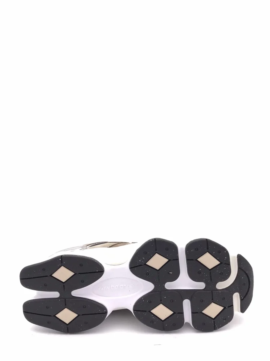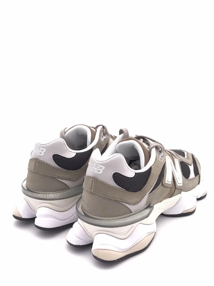 Sneakers running modello 9060 in crosta sabbia e beige e tessuto tecnico color grigio. Dettagli bianchi. Linguetta in tessuto. Logo laterale. Laccio sabbia. Fodera interna in tessuto. Plantare morbido.