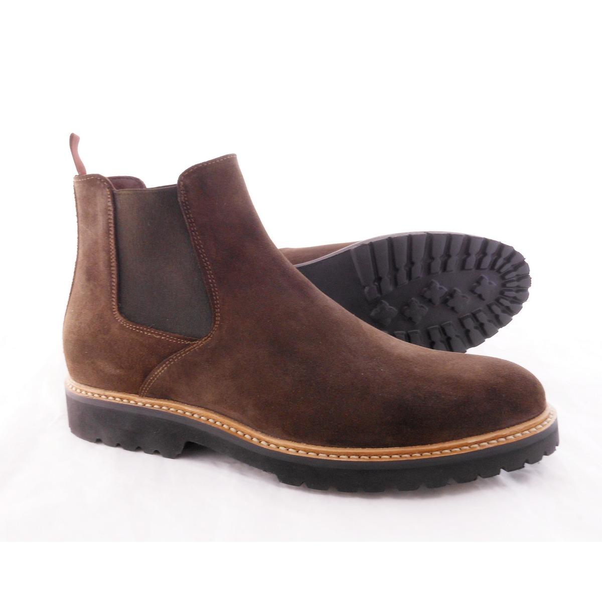 Stivaletti da uomo in pelle di camoscio marrone medio con elastici laterali che assicurano perfetta indossabilitร . La forma arrotondata English Style e i materiali di pregio, valorizzano la tomaia liscia dalla linea essenziale. La tomaia in camoscio รจ di ottimo spessore e resistente allโumiditร . la fodera interna รจ in vera pelle, il fondo รจ in cuoio cucito a Blake (interno) e gomma flessibile e confortevole extralight con ottimo isolamento termico e grip. Il guardolo in cuoio, colore naturale, รจ cucito a Rapida sulla intersuola. Il prodotto ha una lavorazione totalmente artigianale, realizzato nelle Marche 100% Made in Italy