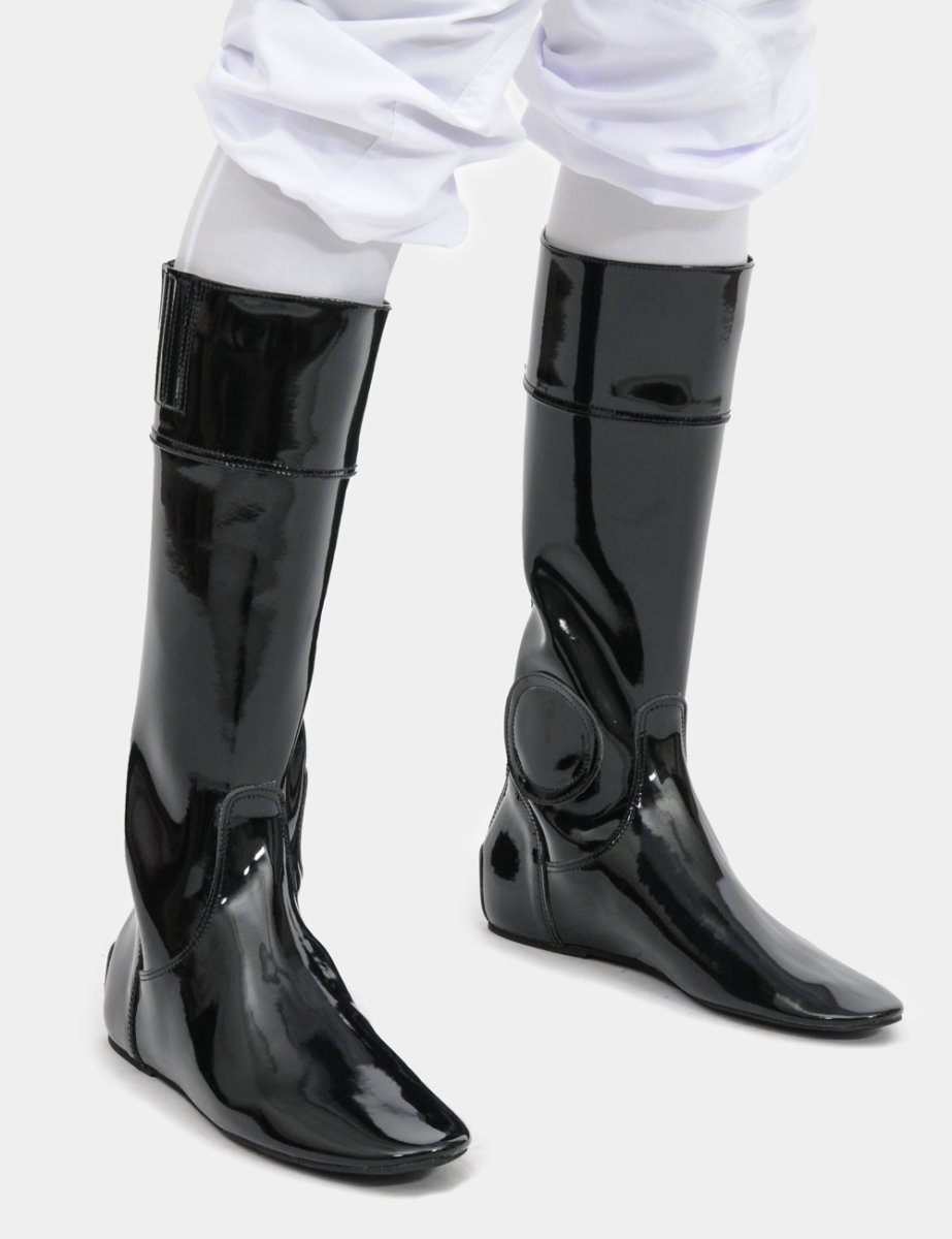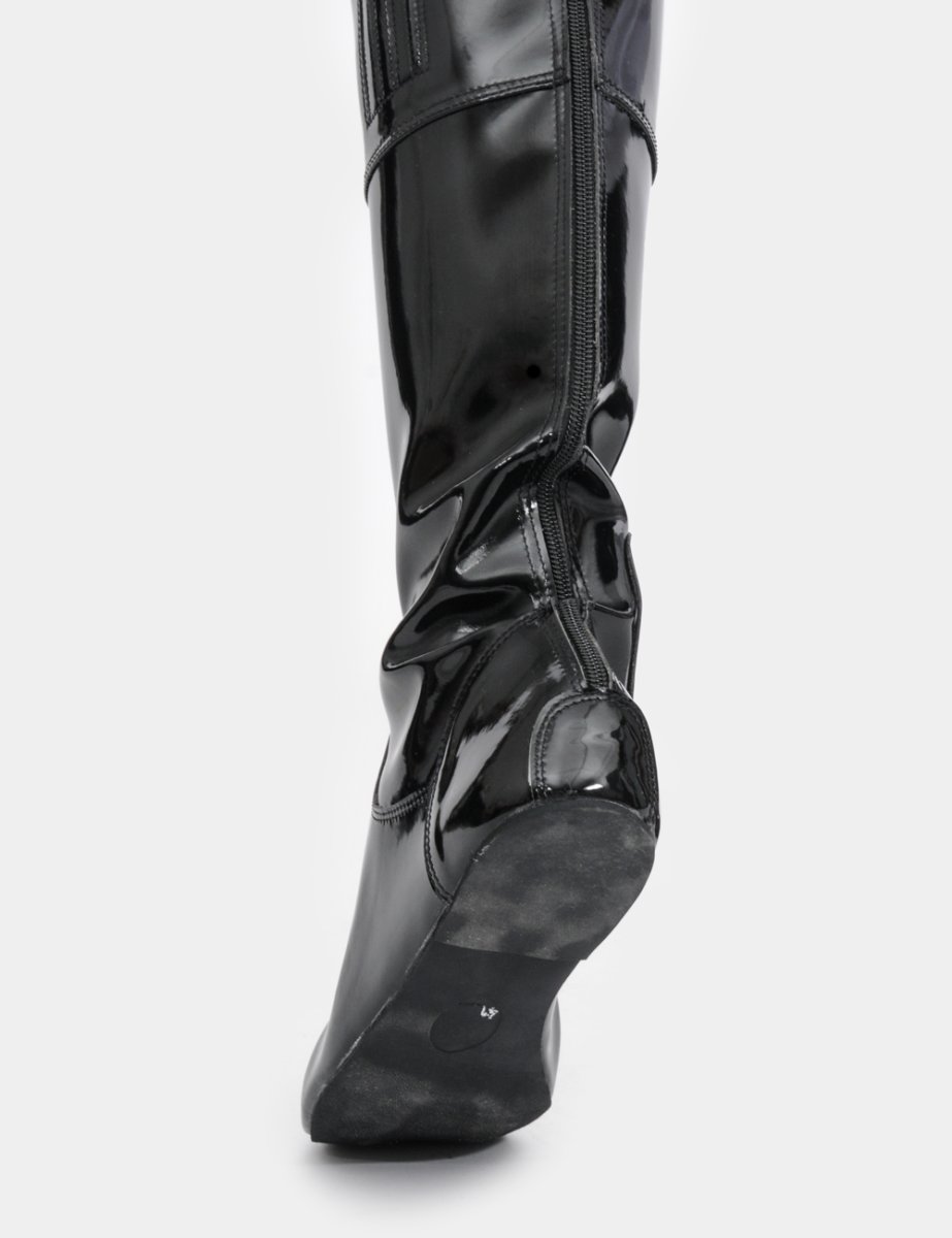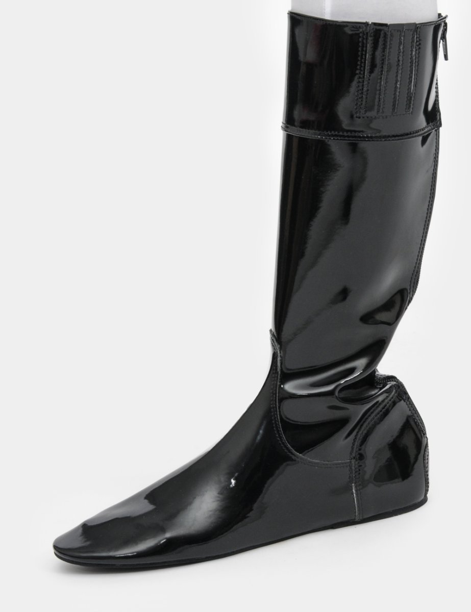Stivale leggero da corsa in clarino lucido nero con cerniera posteriore e possibilitร di fascia liscia o coccodrillo in diversi colori.