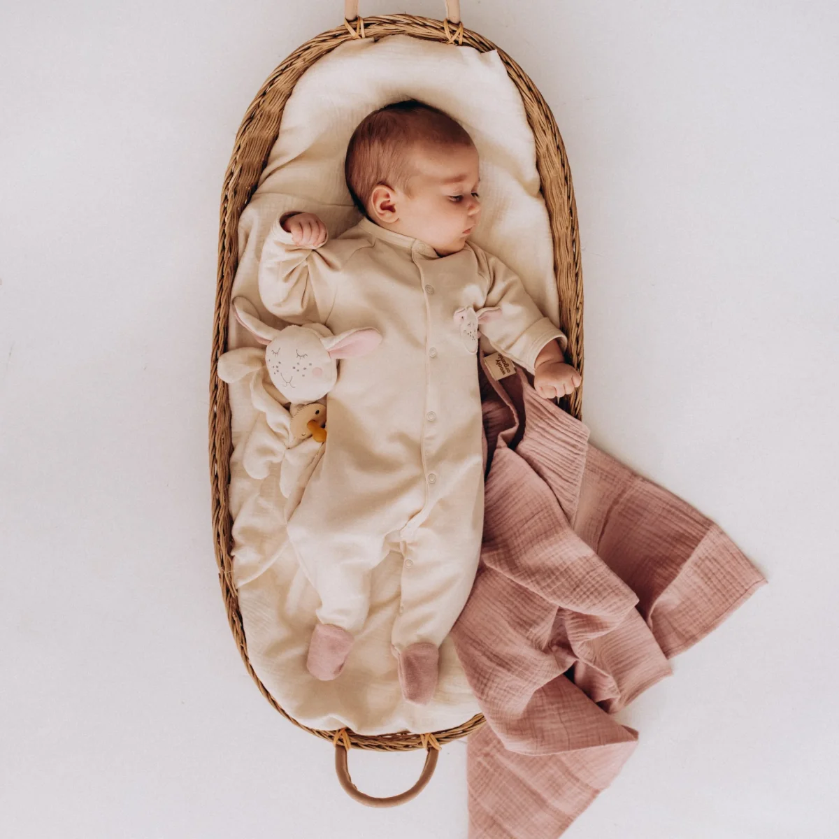 Scopri la dolcezza e la qualitร in questa tutina neonato in cotone organico certificato GOTS. Realizzata con tinture prive di sostanze chimiche, offre il massimo comfort grazie al morbido french terry. I dettagli ricamati di un cagnolino e un coniglietto aggiungono un tocco di tenerezza al capo. Perfetta per i genitori consapevoli, questa tutina combina sostenibilitร ambientale e produzione etica, garantendo che il tuo piccolo indossi solo il meglio. Con i pratici piedini integrati, รจ la scelta ideale per neonati che meritano coccole naturali e responsabili.